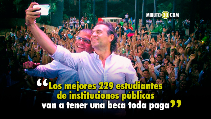 Destacó el mandatario, que los mejores 229 estudiantes de instituciones públicas de Medellín van a tener una beca toda paga para sus carreras profesionales, en universidades públicas y privadas, la cual será seleccionada por cada estudiante, expresó que lo que se quiere es que les vaya muy bien en la vida y que sepan siempre que en el marco de la legalidad se pueden cumplir los sueños.