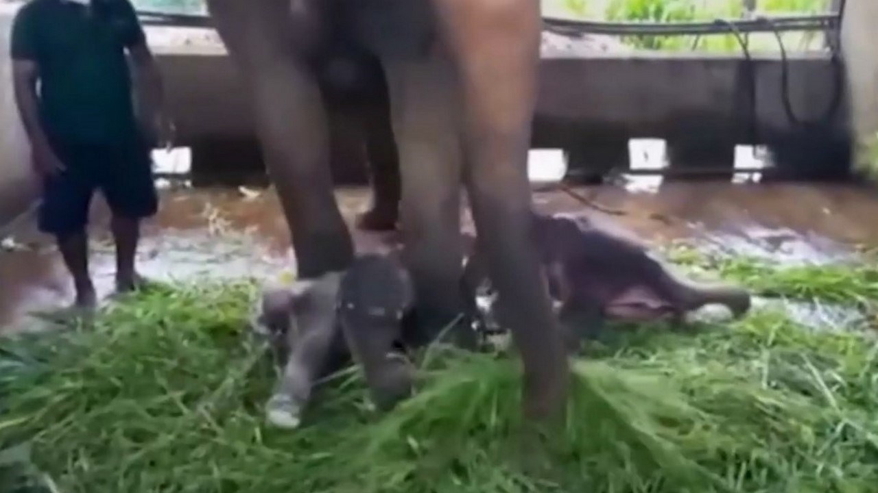 Una elefanta de 25 años llamada Surangi ha dado a luz a gemelos por primera vez en 80 años en Sri Lanka, India.