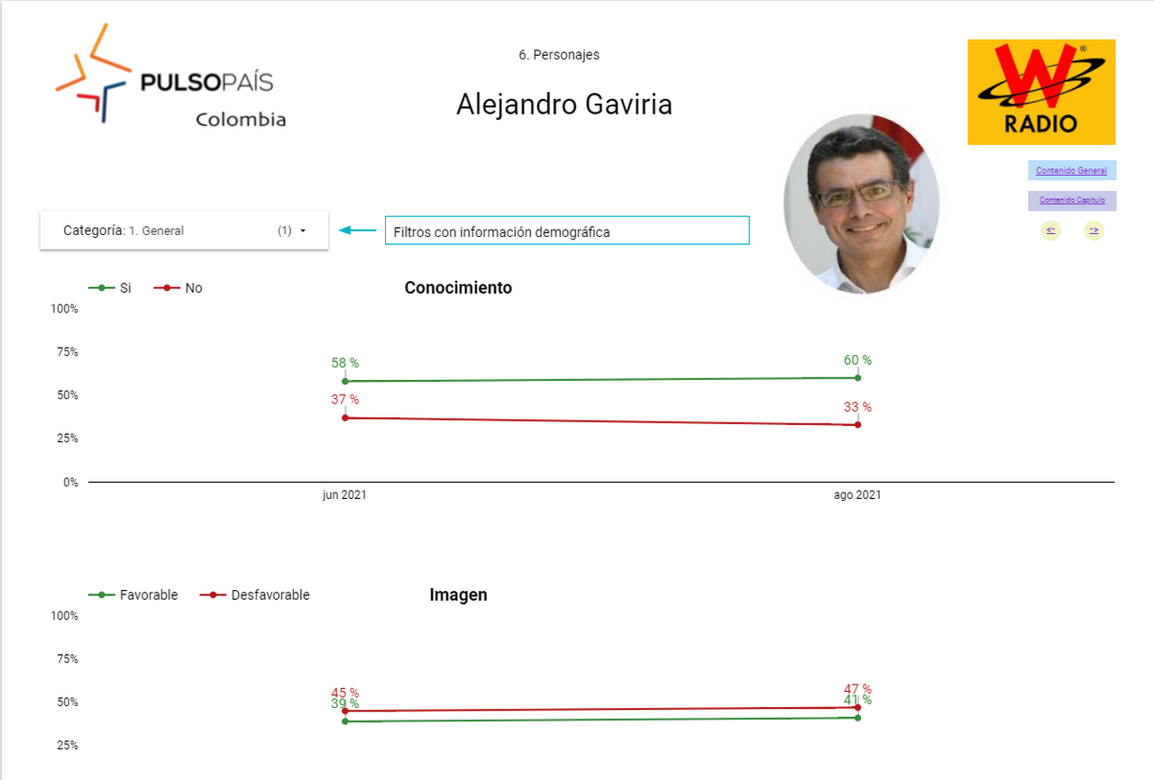 En un panorama donde la gran mayoría de candidatos tienen una imagen negativa, como el caso de Gustavo Petro, con un 57% de desaprobación, u Óscar Iván Zuluaga, con más del 60% de negatividad, Gaviria aparece con una imagen favorable del 41%, lo que comienza a marcar una tendencia de cara a las elecciones.