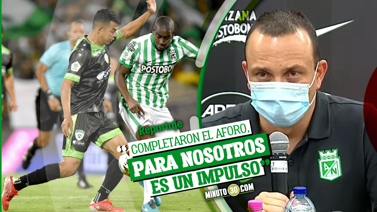 El entrenador Alejandro Restrepo le dedicó a los hinchas el triunfo que logró Atlético Nacional (2-0) ante La Equidad, en la fecha 9 de la Liga BetPlay II-2021.
