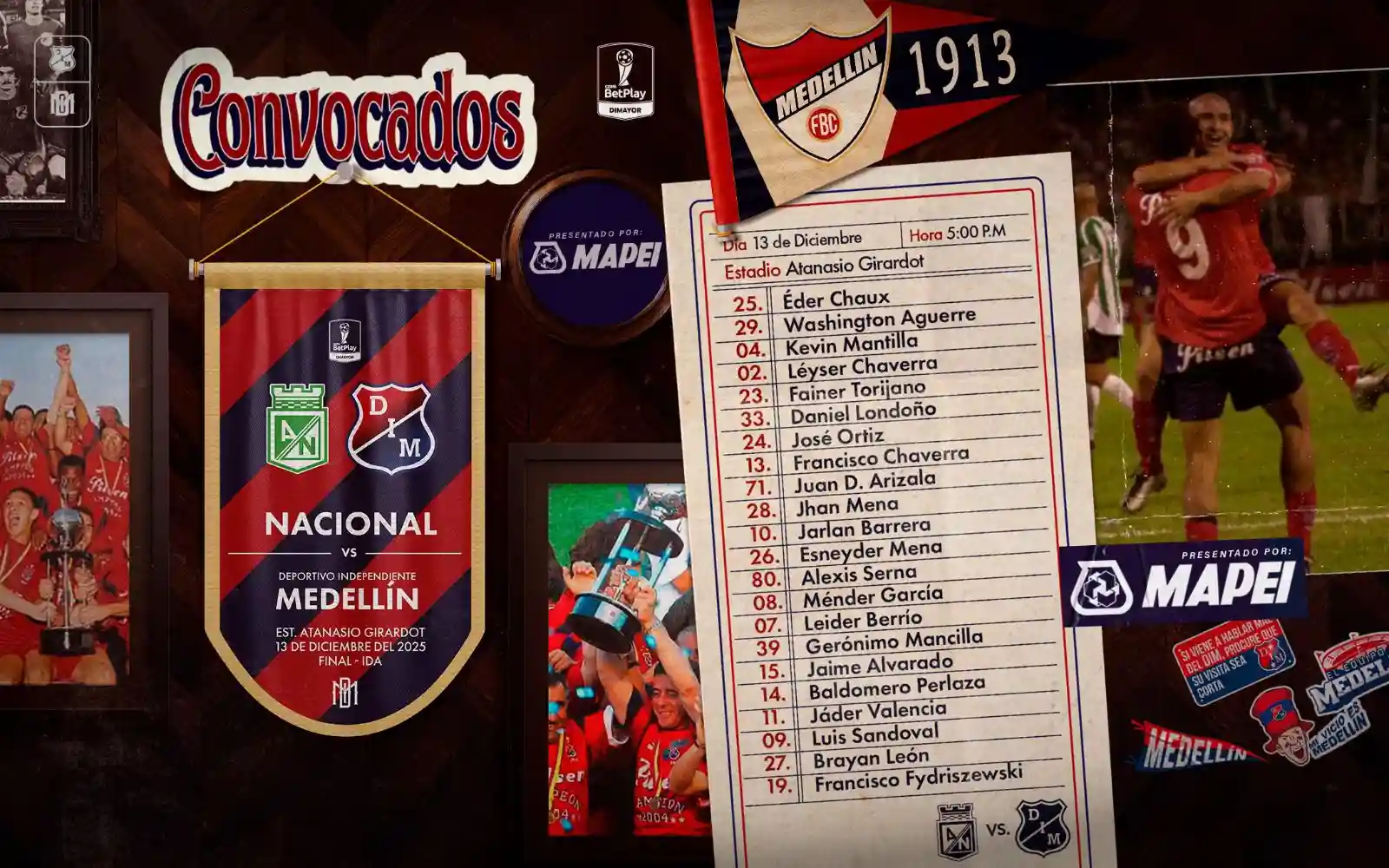 Resumen: El técnico del Deportivo Independiente Medellín (DIM), Alejandro Restrepo, tras asegurar la clasificación a la Copa Libertadores 2026, busca cerrar el año con un título en la final de la Copa BetPlay contra su rival de patio, Atlético Nacional, luego de no haber podido llegar a la final de la Liga. Para este crucial primer partido de la final, donde el DIM será visitante, Restrepo convocó a un grupo de 24 jugadores, incluyendo figuras como Éder Chaux, Washington Aguirre, Kevin Mantilla, Jarlan Barrera, Ménder García, Jaime Alvarado, Baldomero Perlaza, Luis Sandoval y el goleador Francisco Fydriszewski, con la esperanza de obtener una victoria en el encuentro que se disputará a las 5 de la tarde.