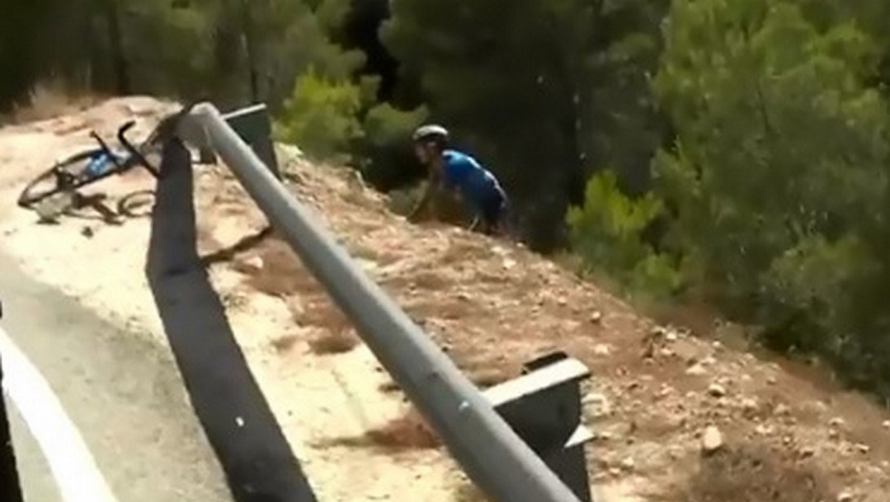 Luego de que el ciclista perdiera el control no pudo mantenerlo y se fue al suelo provocándose varias heridas, aunque logró dar pedal unos kilómetros más poco después del accidente tuvo que parar.