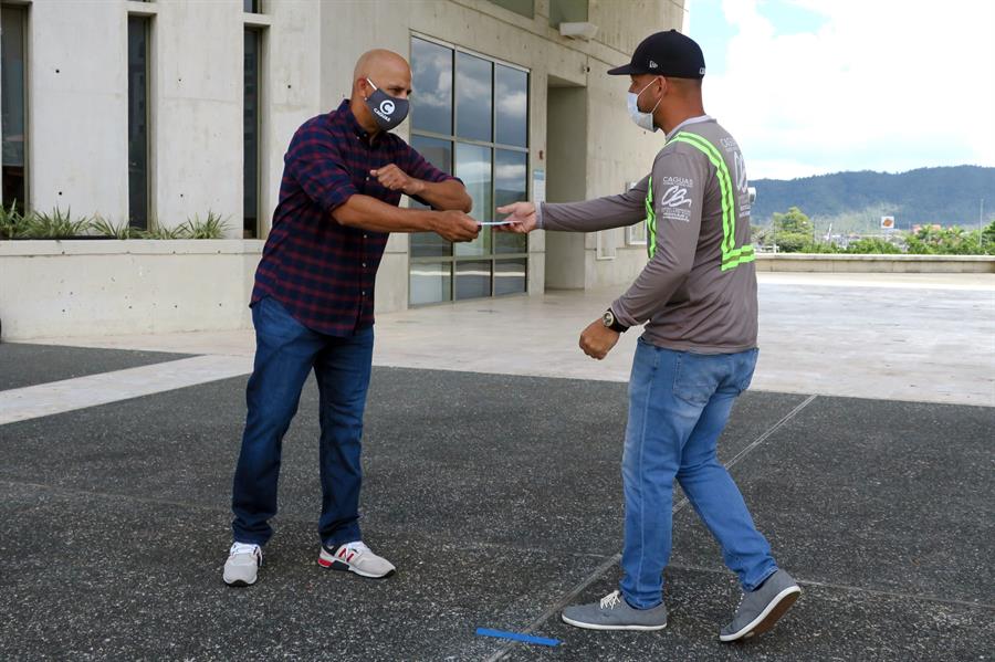 El exbeisbolista y exdirigente puertorriqueño de Grandes Ligas Alex Cora entregó este jueves, junto al alcalde de su municipio natal, Caguas, William Miranda Torres, 50 cheques a igual número de empleados de ornato de dicha localidad, por su labor de primera línea durante la pandemia del coronavirus.