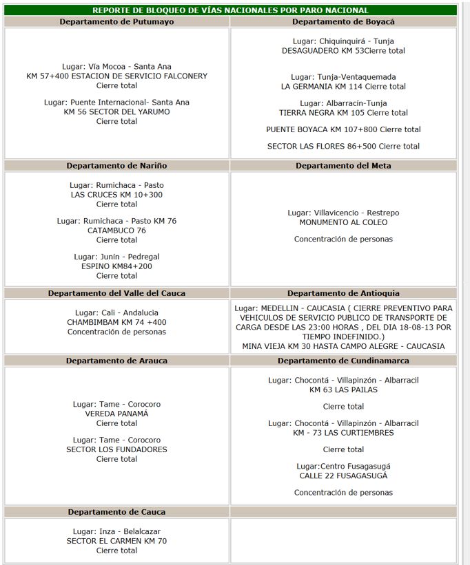 La Policía Nacional habilitó una página para conocer el reporte de las vías afectadas por el Paro, (click acá) :