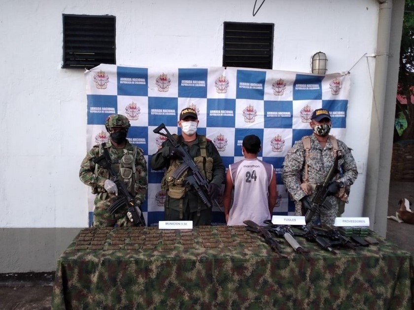 Este sujeto entregó 4 fusiles, 11 proveedores y 700 cartuchos de diferentes calibres; posteriormente, fue puesto a disposición de las autoridades competentes.