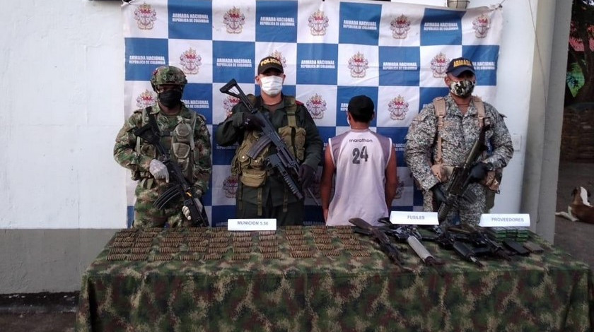 Este sujeto entregó 4 fusiles, 11 proveedores y 700 cartuchos de diferentes calibres; posteriormente, fue puesto a disposición de las autoridades competentes.
