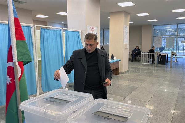 Bakú, 7 feb (EFE).- El presidente de Azerbaiyán, Ilham Aliyev, fue reelegido hoy, miércoles, con casi el 94 % de los votos en los comicios presidenciales anticipados celebrados en el país caucásico, según los primeros sondeos a pie de urna. Por: (EFE)