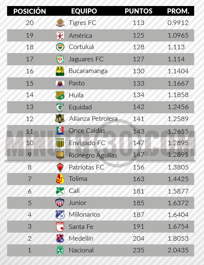 Minuto30.com-  América tuvo un leve respiro tras su triunfo el domingo 2-1 frente a Cortuluá, en el Estadio Pascual Guerrero, pero la tranquilidad le duró poco, pues este lunes regresó a la zona de descenso. Los ‘Diablos Rojos’ habían abandonado provisionalmente la penúltima posición de  la tabla, pero tras la victoria de Jaguares de Córdoba 1-0 […]