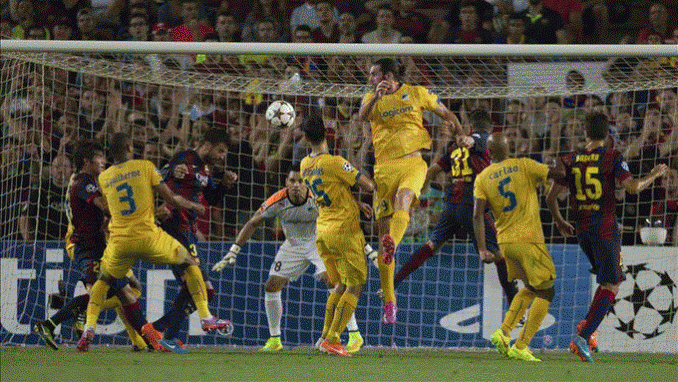 Al equipo de Luis Enrique le costó mucho elaborar jugadas claras. A pesar de imprimir un buen ritmo en el pase, los huecos escasearon y, además, el APOEL subió la defensa hasta a línea del área grande, encogiendo el campo e impidiendo que el Barcelona pudiese desplegar todas sus opciones defensivas.