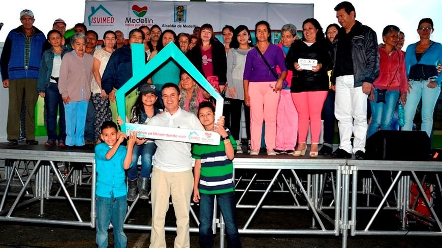 El alcalde de Medellín, Aníbal Gaviria, entregó 100 mejoramientos de vivienda a habitantes de la comuna 8, Villa Hermosa, en un evento efectuado en la Institución Educativa Alfonso López Pumarejo.