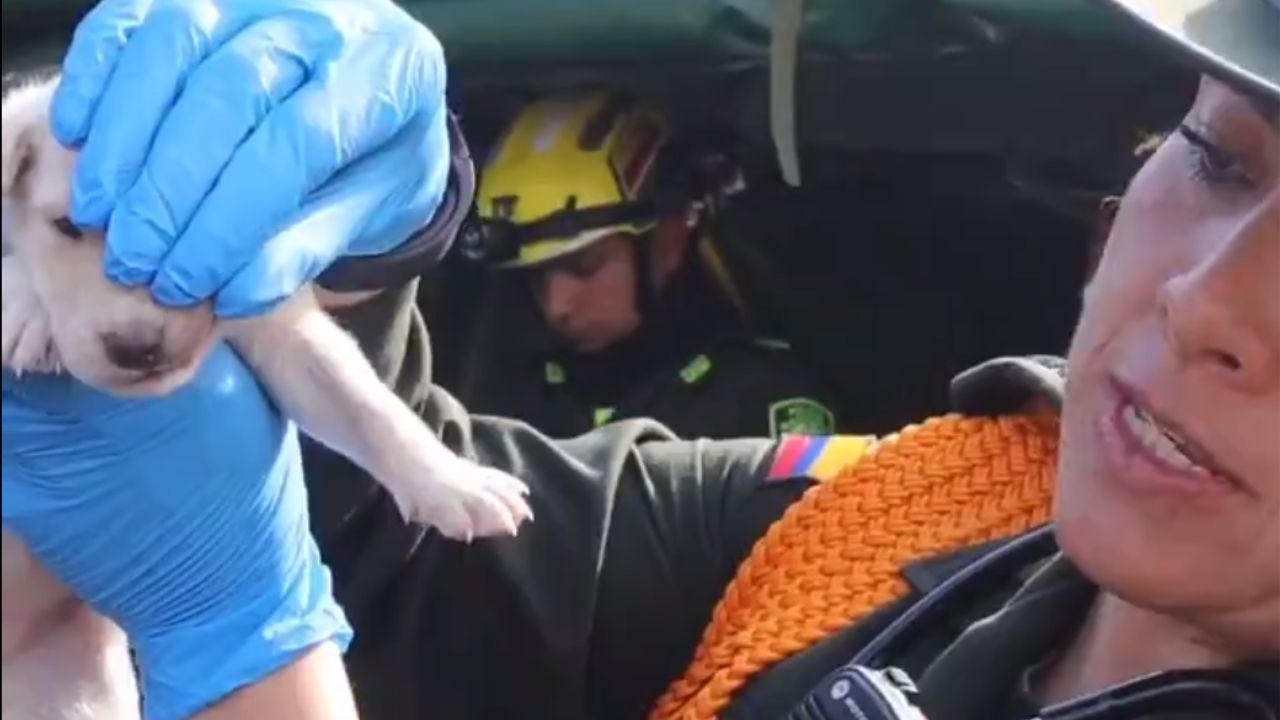Los uniformados que encontraron la camada en la casa, los bajaron del cerro para prestarles asistencia médica.