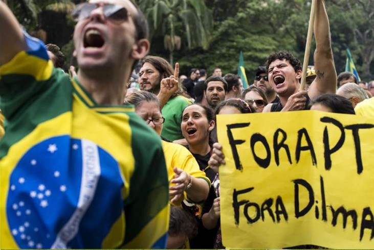 Unas 2.000 personas protestaron hoy en la principal avenida de Sao Paulo contra el Gobierno de la presidenta brasileña, Dilma Rousseff, y contra la corrupción que dicen que sacude al país y que convirtió a la petrolera Petrobras, mayor empresa de Brasil, en blanco de numerosas investigaciones.