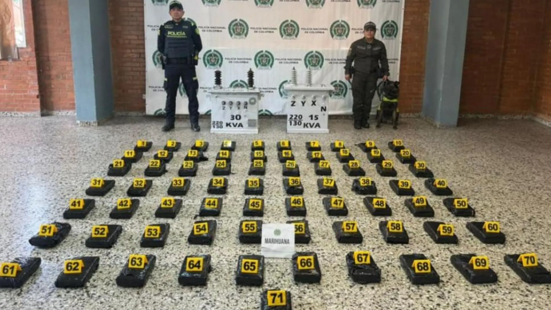 En el interior de la encomienda se hallaron dos transformadores de energía que, al ser revisados minuciosamente, ocultaban una sustancia vegetal con olor y características similares a la marihuana. Tras el procedimiento de verificación, las autoridades confirmaron que se trataba de 71 paquetes envueltos en vinipel, con un peso total aproximado de 84.225 gramos del estupefaciente.