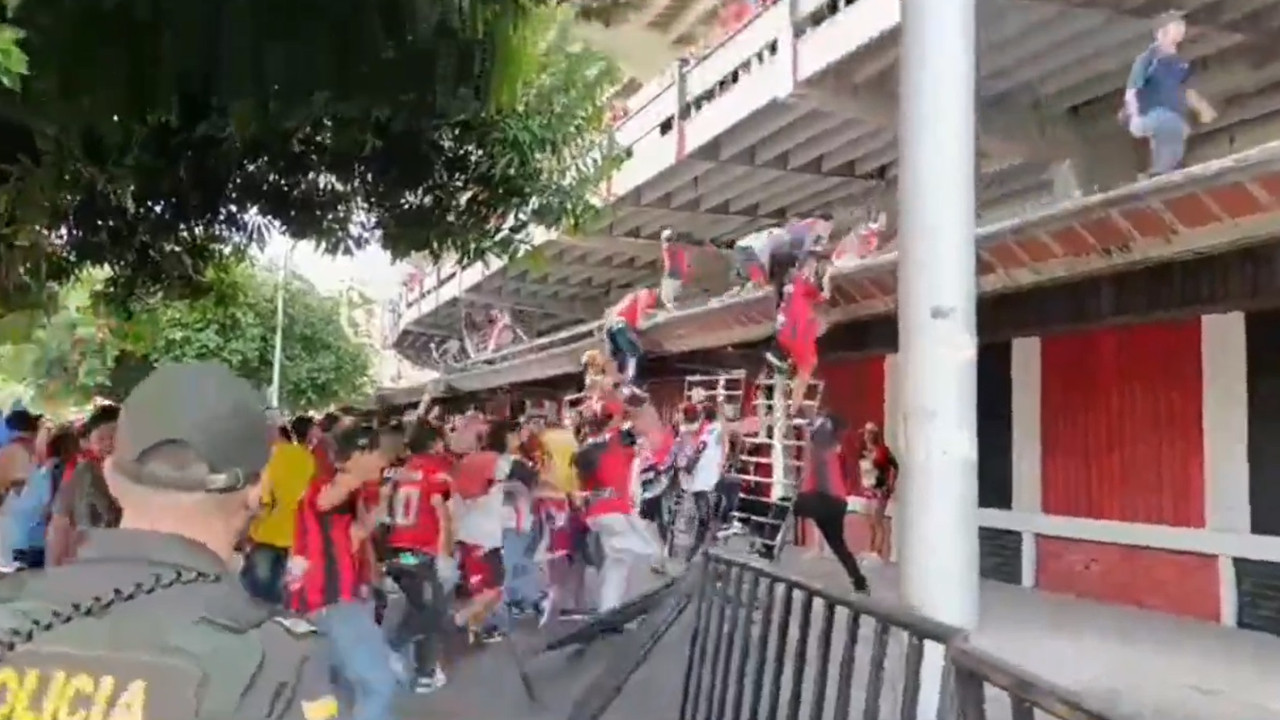 Los hinchas del Cúcuta no soportaron la derrota contra Llaneros y se metieron a la fuerza al estadio General Santander. Foto: Tomada de video