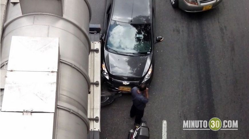Minuto30.com-. Hace aproximadamente una hora se registró un accidente de tránsito debajo del puente de la Aguacatala, cuando un automóvil colisionó contra una tractomula.