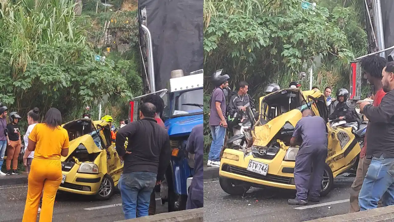 Un accidente de tránsito se registró en la tarde de este miércoles 1 de abril en el occidente de Medellín. El siniestro ocurrió hacia las 3:50 p.m. en el kilómetro 0 de la vía que conduce al Túnel de Occidente, en el sector de San Cristóbal. De acuerdo con los primeros reportes, en el hecho se vieron involucrados un taxi y un camión.