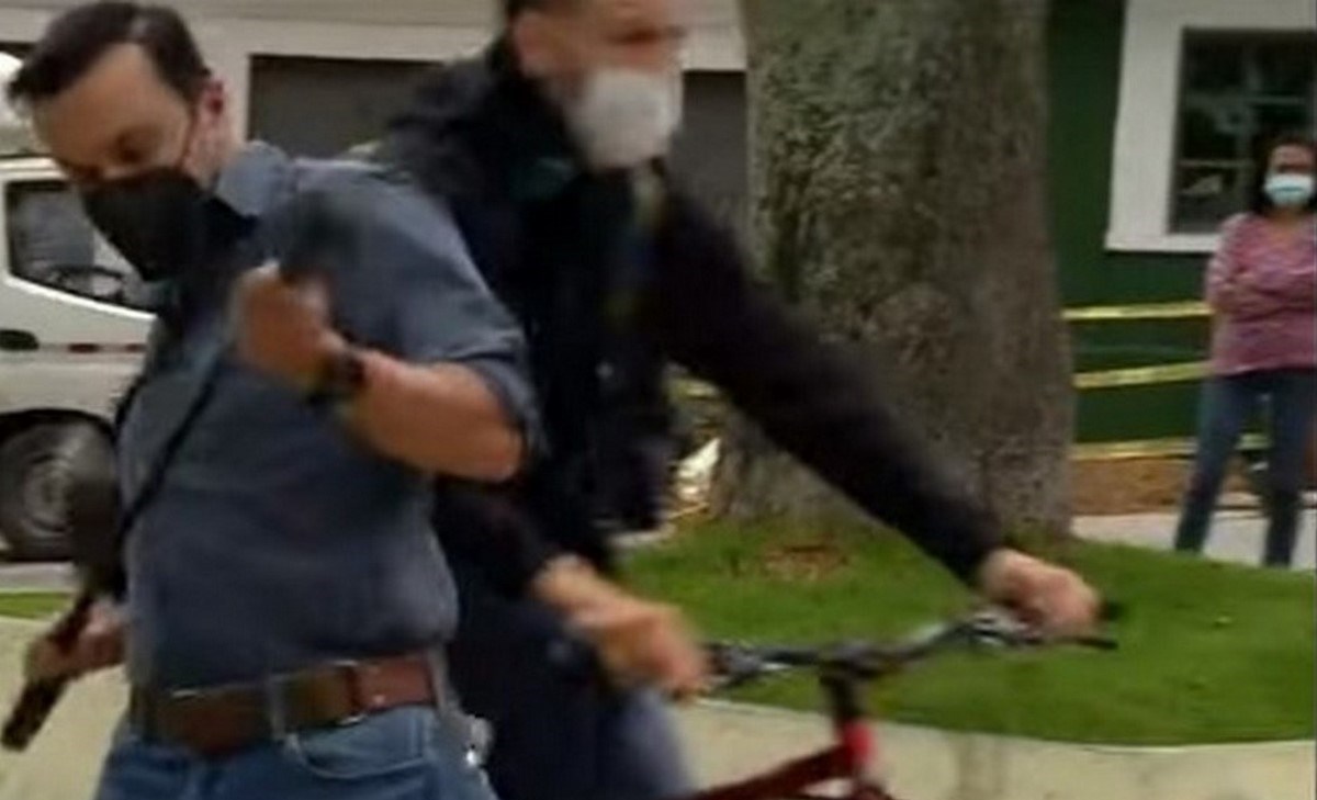 Mientras Juan Diego Alvira buscaba con quien hablar mientras el noticiera estaba en directo, pasaron varios ciclistas muy cerca de el presentador, pero el tercer hombre montado en la cicla quien lo estrujo.