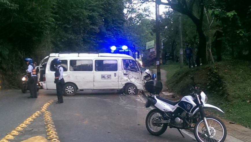 Minuto30.com-. Ciudadanos reportaron de un accidente ayer en la vía que baja de la Loma del Tesoro, en El Poblado, que involucró a dos busetas de transporte escolar.