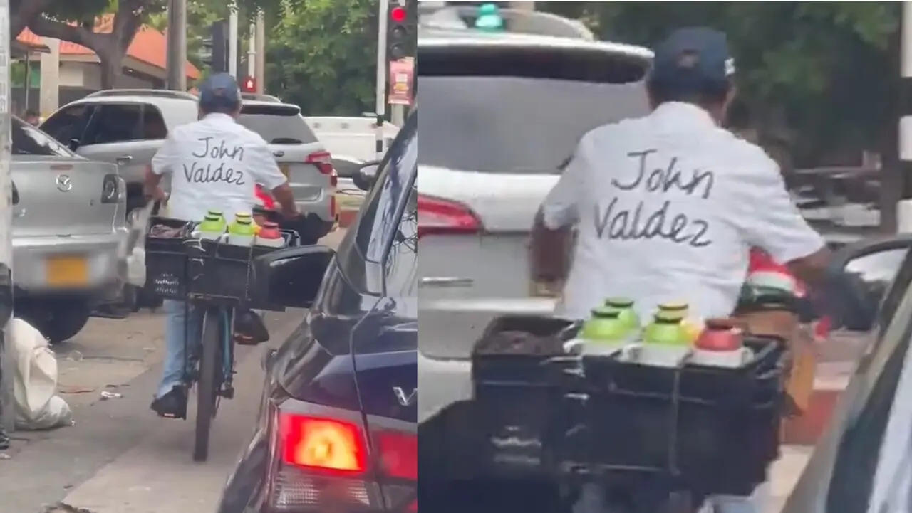El vendedor, que recorre las calles de la “Arenosa” en bicicleta y con un cajón lleno de termos, llamó la atención de miles de internautas por su entusiasmo y la similitud fonética de su marca personal con la multinacional colombiana.
