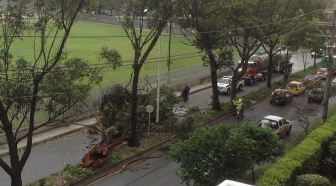 El hecho ocurrió a las 2:00 de la tarde de este lunes 6 de octubre. Los fuertes vientos que acompañaron las lluvias hicieron que el árbol se fuera al piso, cayendo sobre el motociclista que en ese momento pasaba por el sector.