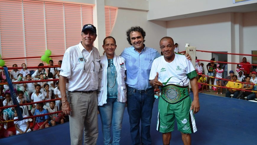 Por su parte, el Gobernador Sergio Fajardo expresó su emoción por la posibilidad de homenajear en vida a este exboxeador al denominar el gimnasio de boxeo con su nombre y recalcó que este homenaje es porque “Escuelita” ha sido todo un señor, un antioqueño que ha apostado por la decencia y la legalidad como estilo de vida para aportar en la formación de los talentos jóvenes de Arboletes y Urabá.