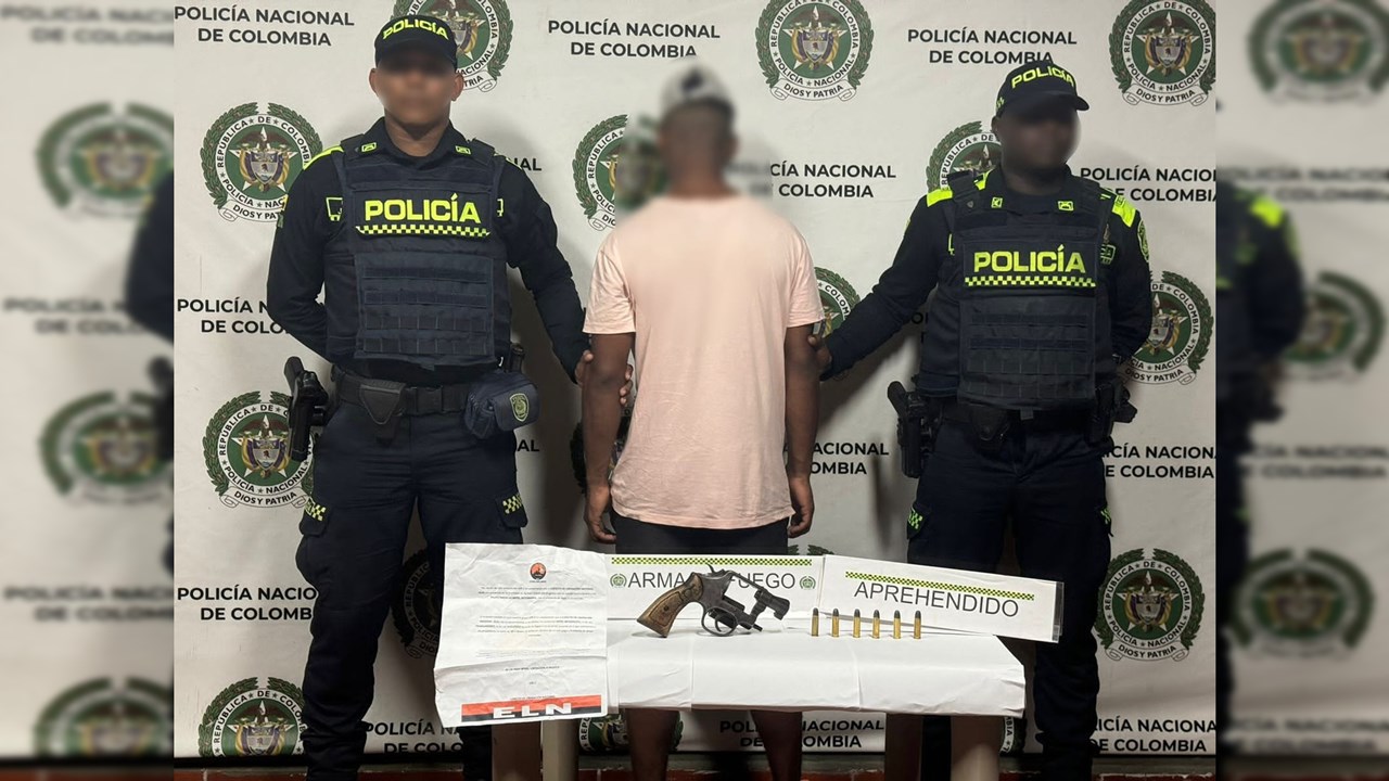 Al momento de la aprehensión, se le halló en su poder un arma de fuego tipo revólver marca Smith y Wesson calibre 38, sin número interno ni externo, seis cartuchos y un panfleto alusivo a una organización armada rebelde, en el cual se exigía una suma de dinero a cambio de no atentar contra la víctima.