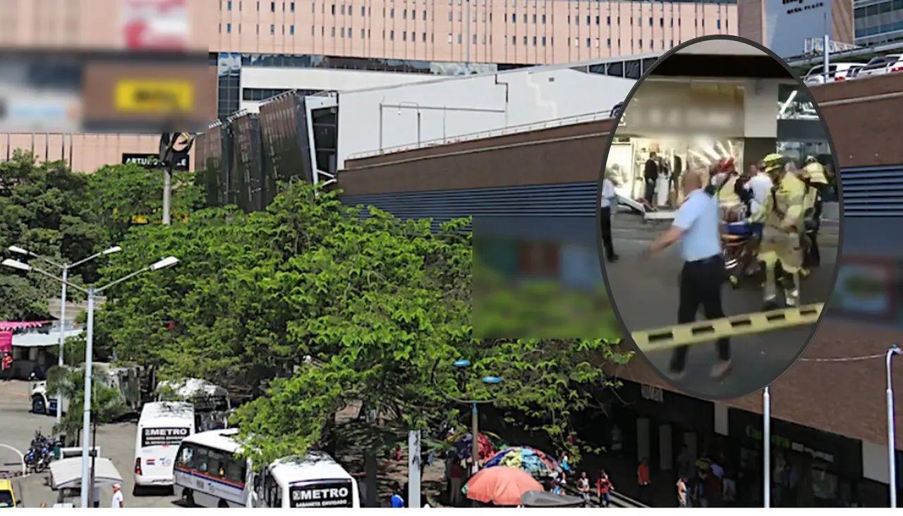 El angustiante incidente tuvo lugar en la zona externa de la Etapa 1 del centro comercial, por el sector donde hay paraderos de buses y acceso al metro de Medellín. Según los relatos de testigos presenciales, varios elementos pesados de la estructura del techo cedieron de manera repentina, desatando el pánico absoluto entre quienes presenciaron cómo los escombros caían sobre un ciudadano.