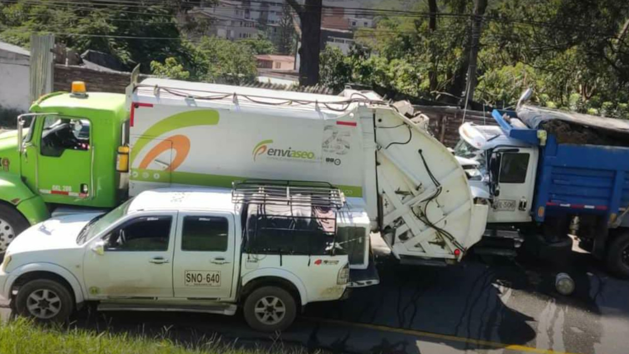 Una volqueta, un carro recolector de basura y una camioneta se dieron en sentido sur – norte.
