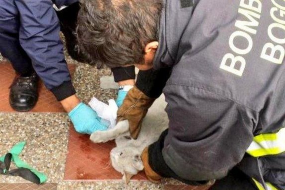 Bomberos de la estación de Puente Aranda realizaron el rescate del animal.