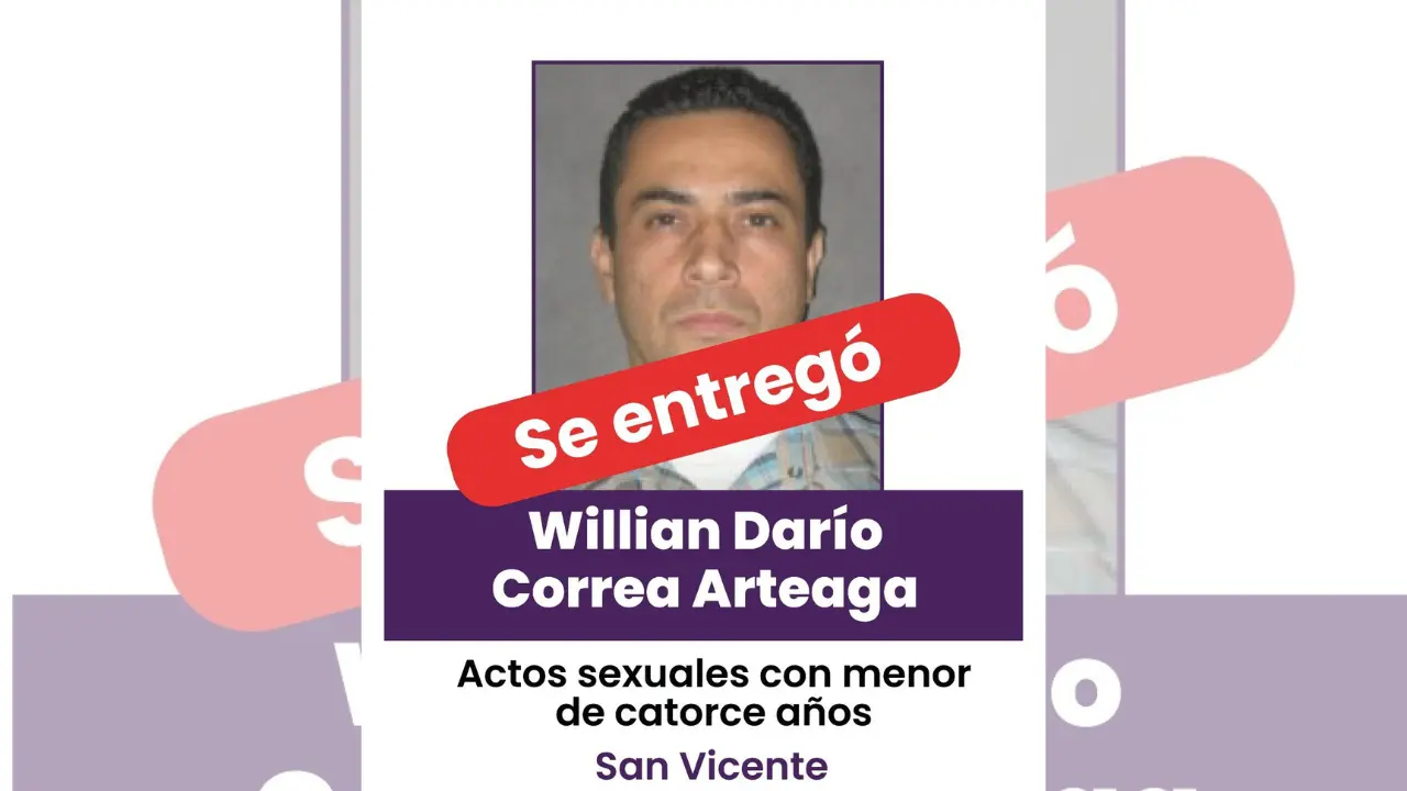 El gobernador del departamento, Andrés Julián Rendón, confirmó que en las últimas horas se produjo la entrega voluntaria de William, un hombre de 58 años que figuraba como uno de los objetivos prioritarios en el cartel de los más buscados por delitos sexuales contra menores y mujeres.