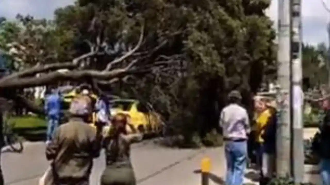La caída de un árbol de gran tamaño generó momentos de tensión en la tarde de este jueves 16 de abril, en el sector de Modelia, en Bogotá, tras desplomarse sobre un vehículo que transitaba por la zona.
