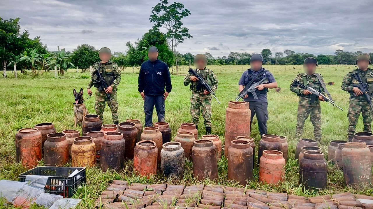 Tropas de la Fuerza de Tarea Conjunta Omega, junto a la Fiscalía, llegaron a la vereda Las Damas, donde estaban 123 artefactos explosivos improvisados, 52 detonadores eléctricos, 50 medios de lanzamiento, 100 metros de cable dúplex, cuatro kilogramos de pólvora y dos baterías.