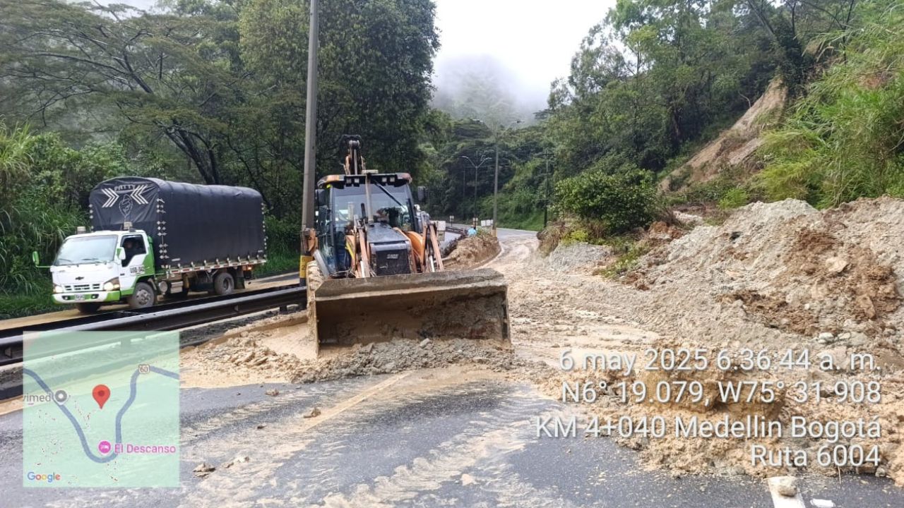 A esta hora de la mañana se presenta movilidad reducida en la autopista Medellín-Bogotá debido a un derrumbe de gran magnitud provocado por las intensas lluvias que han azotado en la noche del lunes y la madrugada de este 6 de mayo.