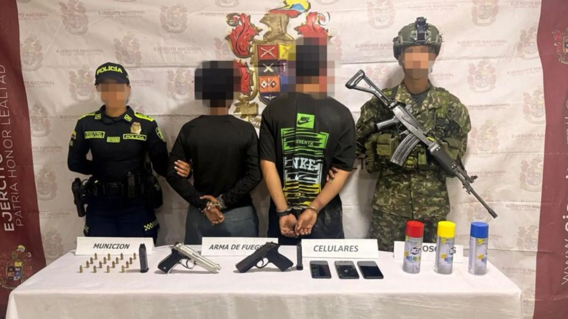 Durante la operación, los uniformados encontraron en poder de los capturados varios elementos que, según las autoridades, estarían relacionados con actividades delictivas. Entre el material incautado se reportan dos armas de fuego tipo pistola, junto con 16 cartuchos para las mismas.
