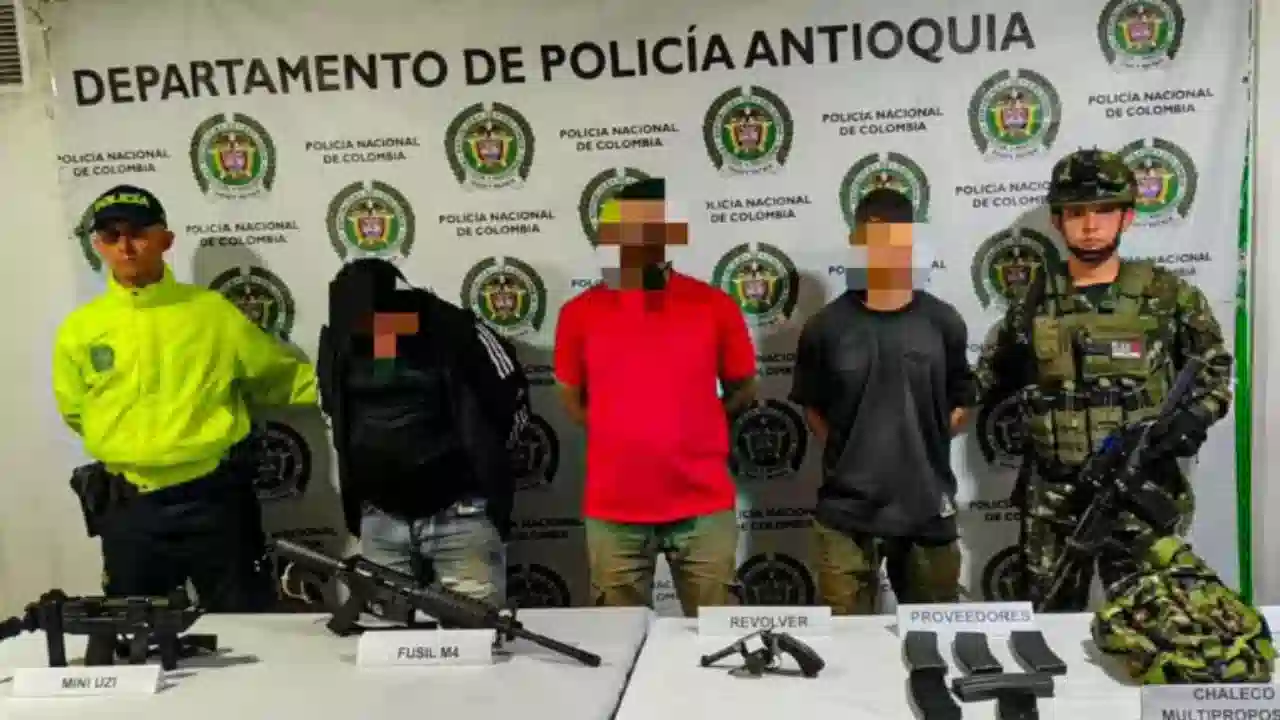 Durante el procedimiento en flagrancia, los uniformados incautaron un arsenal que incluía un fusil M4, una mini uzi automática, un revólver y más de 200 cartuchos, material con el que mantenían el control territorial en municipios como Concordia y Ciudad Bolívar mediante el uso de la violencia.