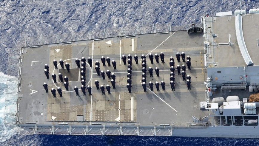 Fotografía cedida por el Ministerio británico de Defensa de la formación hecha por los marinos con la palabra niña, en honor al nacimiento de la hija de los duques de Cambridge, Guillermo y Catalina, hoy en el barco Type 45 HMS Dragon, en Portsmouth (R.Unido). EFE/Royal Navy