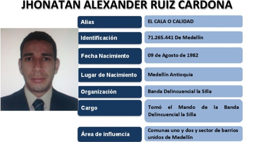 Minuto30.com-. Según informó la Fiscalía, anoche fue capturado Jhonatan Alexander Ruíz Cardona, alias ‘el Cala’ o ‘Calidad, presunto cabecilla de la banda ‘la Silla’, que delinque en las comunas 1 y 2 de Medellín.