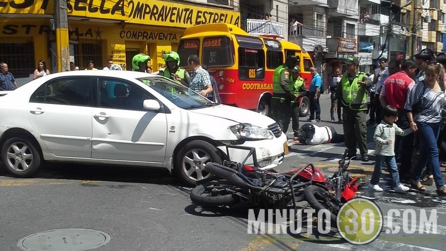 Minuto30.com-. Un incidente de tránsito en el que se vieron involucrados un vehículo y un una moto dejó un motociclista lesionado en Itagüí.