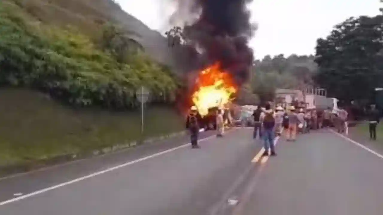 El reporte inicial de las autoridades de tránsito y los organismos de socorro que llegaron al lugar indica que, tras el impacto, se produjo una fuerte explosión que dificultó las labores de rescate de los pasajeros.