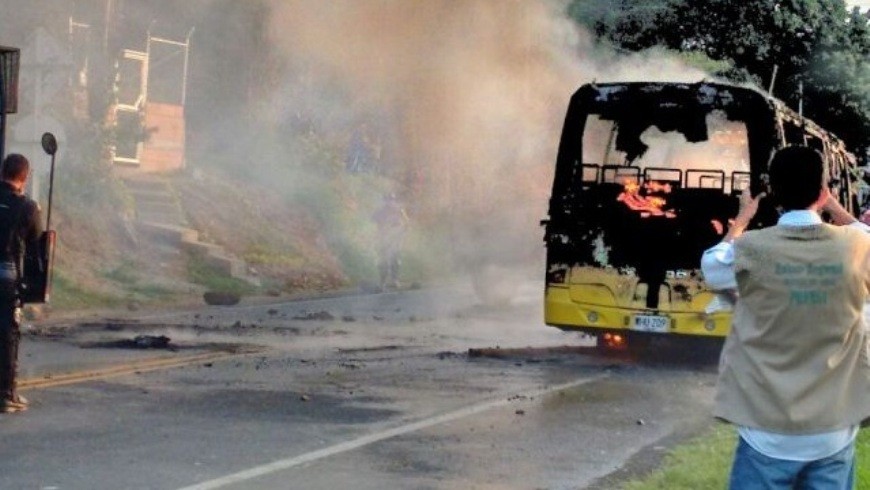 En el sitio, indígenas atravesaron varios vehículos y quemaron un bus que cubría la ruta Cali – Popayán.