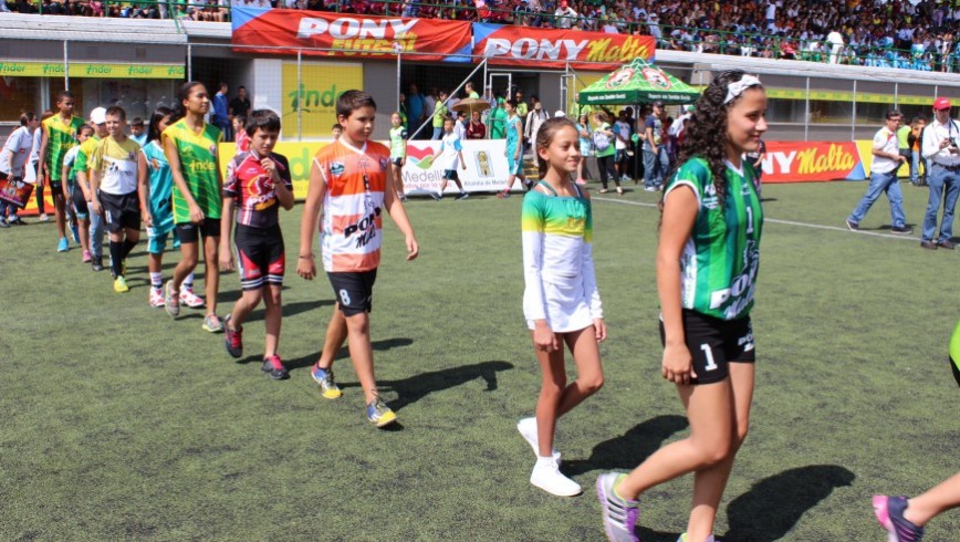1.200 deportistas y entrenadores que alcanzaron a colmar la tribuna de la cancha Marte Uno, vivieron la alegría de tener en su poder el traje distintivo que los hará disfrutar y mostrar sus progresos en una de las citas más importantes del deporte infantil del país, que congregará a 4.100 pequeños deportistas cuando hayan arribado todas las delegaciones y empiecen los festivales.