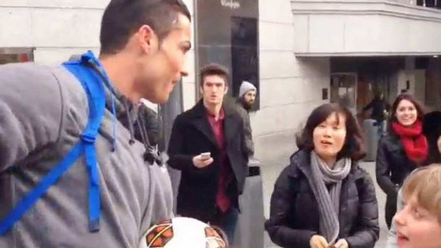 Cristiano Ronaldo se vistió de indigente para cumplir el sueño de conocerlo a un joven admirador, el crack del Real Madrid se puso bigote y peluca, y en pleno centro de la capital española abordó al menor.