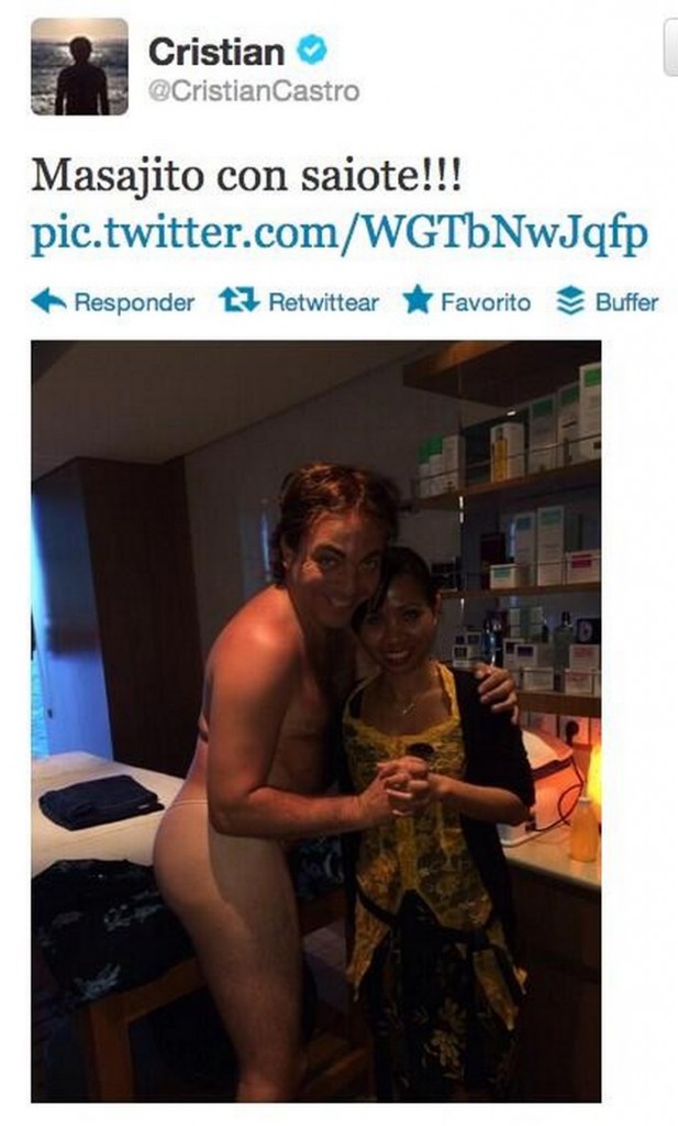 El cantante mexicano Cristian Castro ha sorprendido a los usuarios de las redes sociales al subir una captura en la que aparece desnudo (en una diminuta tanga) junto a su masajista.