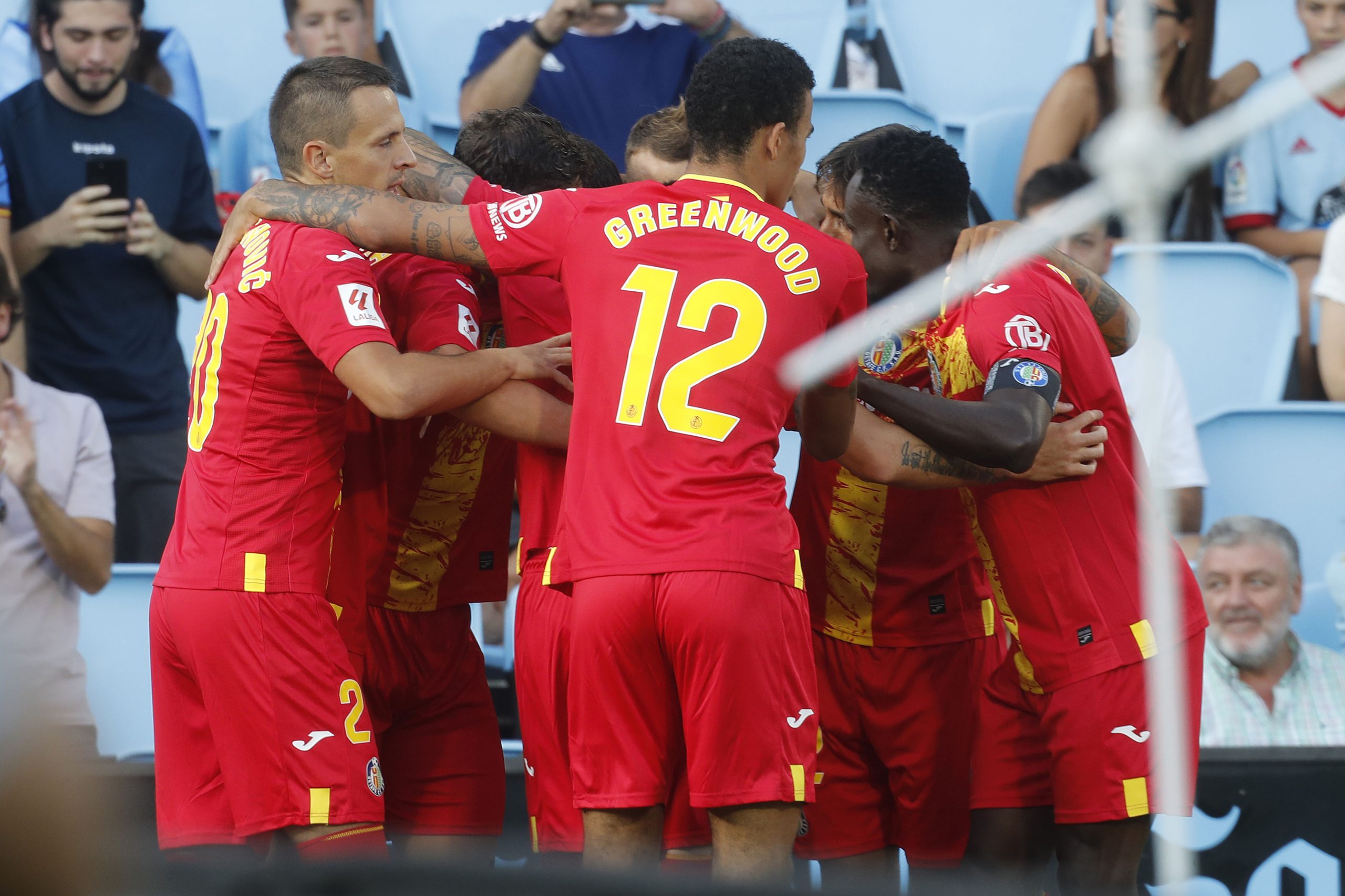 Vigo, 8 oct (EFE).- Celta y Getafe empatan a dos goles al descanso en Balaídos, después de 45 minutos intensos y en los que no faltó de nada, pues además de los cuatro tantos hubo un expulsado –Domingos Duarte-, un penalti fallado por Iago Aspas y un gol de Larsen concedido tras la revisión en la sala VOR.