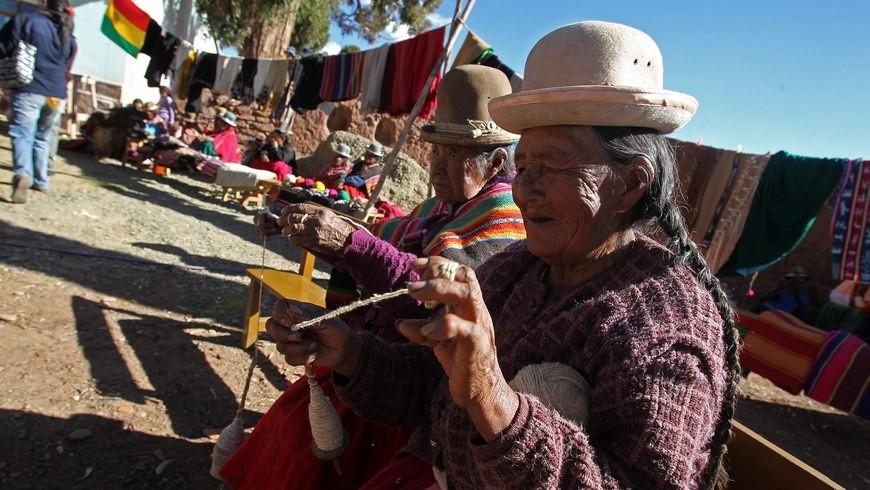 Imagen de unas mujeres aimaras en uno de los tramos del Qhapaq Ñan, el sistema vial andino que pasa por Argentina, Bolivia, Chile, Colombia, Ecuador y Perú y es reconocido como Patrimonio Mundial de la Organización de las Naciones Unidas para la Educación, la Ciencia y la Cultura (Unesco). EFE/Archivo