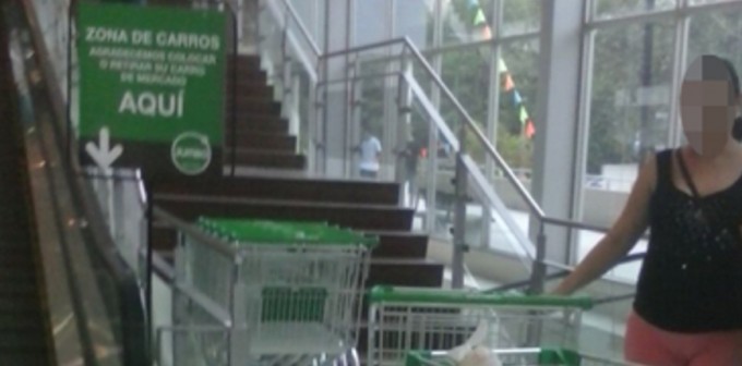 Según Denuncia Ciudadana llegada hasta Minuto30.com, un Establecimiento de Grandes Superficies ubicado en Envigado obstaculiza las escaleras que llevan del almacén a la puerta de salida con los carros de mercado; y no es que sea una situación “eventual”, pues se puede leer en el cartel ubicado en ese sitio “Zona de carros” y la flecha que señala el lugar.