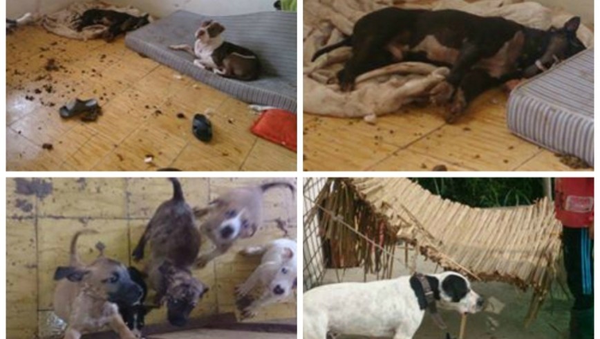 Según la denuncia, los perros permanecen amarrados todo el día y toda la noche, los mantienen con bozales sin agua y sin comida. También les ponen collares de castigo.