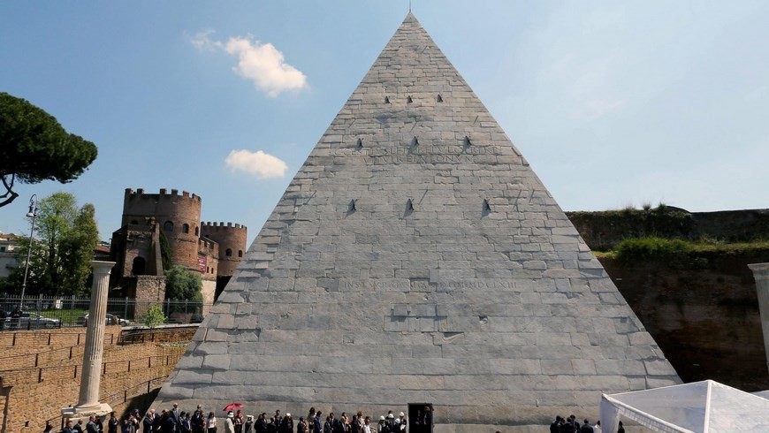Vista de la Pirámide Cestia de Roma tras los trabajos de restauración a los que ha sido sometida, en Roma, Italia, hoy, 20 de abril de 2015. EFE