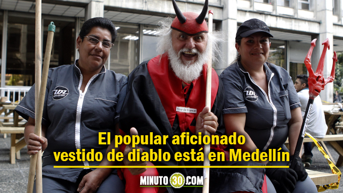 El alemán Didi Senft, el popular aficionado vestido de diablo que alienta a los ciclistas en el Tour de Francia, está en Medellín como imagen de una carrera ciclística.