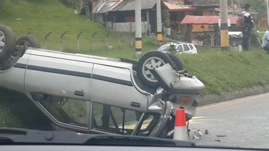 Minuto30.com-. Un aparatoso accidente que se registró hoy en la autopista Medellín – Bogotá, a la altura del municipio de San Vicente, dejó como saldo dos personas heridas.
